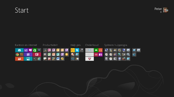 Het startmenu 2.0. Het is als het beste wat Windows XP en Windows 7 te bieden hebben, maar dan beter. 'Overdreven' zeg je? Met een enkele tap je programma's openen is een verbetering ten opzichte van een startmenu waarbij je alsnog van menu naar menu gaat totdat je bent waar je moet zijn. Dat was geen startmenu, dat zijn tientallen directories die verstoppertje spelen. Nu kun je in een opslag zien in welk blok je moet zijn, welk programma je moet hebben voor wat je wilt doen en deze direct opstarten.